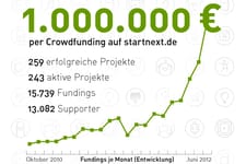 Die Crowdfunding Bewegung gewinnt immer mehr an Fahrt und heute konnten wir auf Startnext einen lang herbeigesehnten Meilenstein knacken: die 1 Million Marke!Am 28.06.2012 genau um 17.00 Uhr wurden auf Startnext insgesamt eine Million Euro von der Crowd für Kreativprojekte eingesammelt.Natürlich ist das ein Grund zum feiern, weil es zeigt das Crowdfunding immer mehr in der breiten Masse ankommt. Für uns ist es aber auch ein Grund euch diese Entwicklung auf Startnext in Zahlen, Daten und Fakten nochmal aufzuzeigen.