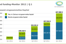 Auch den Crowdinvesting Plattformen Seedmatch und Innovestment konnte ein guter Start in Q1 2012 bescheinigt werden. Alles Startups konnten ihre angestrebten Fundingsummen übertreffen. Drei Projekte konnten sogar die gesetzlich vorgegebene Maximalsumme von 100.000 Euro erreichen. Im Bereich Crowdinvesting verspricht das erste Quartal 2012 weitere Erfolge. Durch neu gegründete Plattformen in diesem Bereich erwartet Für-Gründer ein Finanzvolumen von 4 bis 5 Millionen Euro.