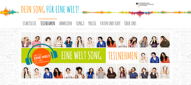 Der Einewelt Song Contest, initiiert vom Bundesministerium für wirtschaftliche Zusammenarbeit und Entwicklung, ist ein Musik-Wettbewerb der ganz besonderen Art. Gesucht wird ein Song, der bewegt und die Unterschiede in der Welt feiert, anstatt sie als Probleme zu behandeln. Ein Song, der ermutigt Dinge zu ändern und die Welt ein Stückchen gerechter, sozialer und besser zu machen. Ein Song, der die Menschen, so unterschiedlich sie auch sein mögen, weltweit gleichstellt und verbindet.