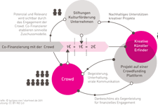 Angesichts der hart umkämpften öffentlichen Fördertöpfe, kann Crowdfunding einen neuen Finanzierungsbaustein darstellen, insbesondere für Projekte aus dem Nachwuchsbereich. Die private Kulturförderung, die im deutschsprachigen Raum bisher noch relativ schwach ausgeprägt ist, wird über das Crowdfunding-Modell gestärkt und die verfügbaren Gesamtbudgets für kreative Projekte können erhöht werden. Ein Ansatz ist, die Crowd in den Auswahl- und Förderprozess von kreativen Projekten miteinzubinden und damit eine neue Form der partizipativen Förderung zu ermöglichen.