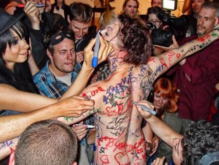Exzentrisch, unkonventionell und hemmungslos – Amanda Palmer ist definitiv kein Mauerblümchen. Bestes Beispiel dafür ist wohl die Kickstarter-Party in Berlin, bei der sie sich als nackte Leinwand ihren Unterstützern hingab und ihnen somit ihr Vertrauen bewies.