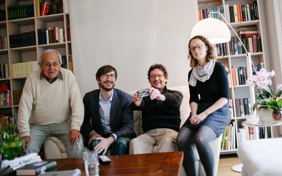 Foto: Dieter Hildebrandt (Kabarettist), Denis Bartelt (Startnext), Stefan Hanitzsch (Störsender.tv), Anna Theil (Startnext)