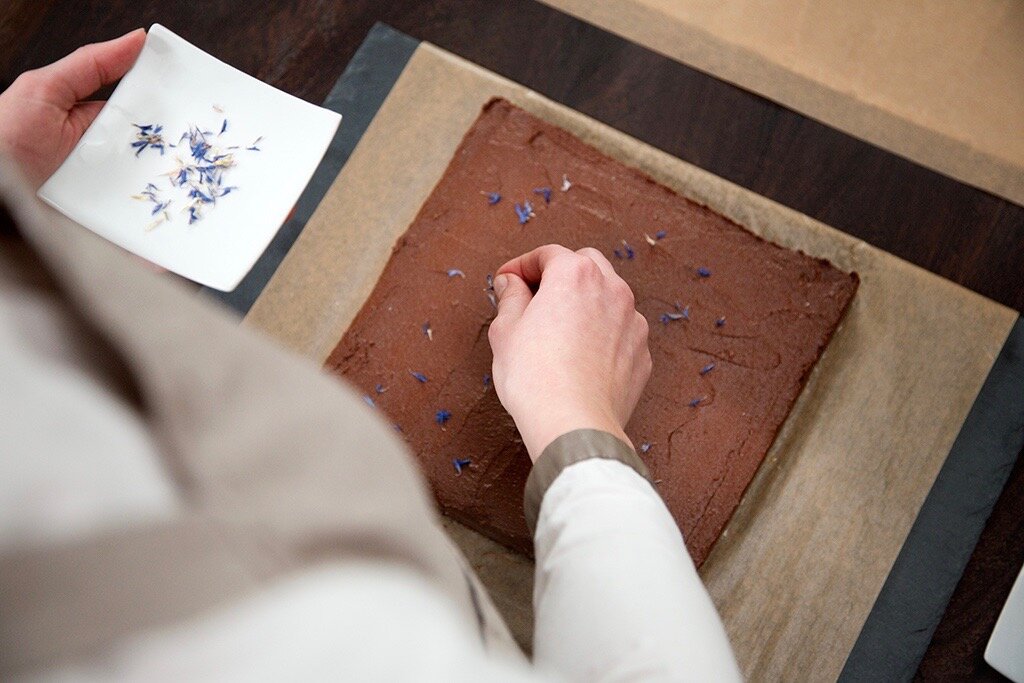 Ich bin Anna (26) und mache Pralinen und Schokolade. Patisserie und Konfekt ganz ohne Zucker, Gluten, Milch oder Ei. Dafür in bester Rohkost- und Bio-Qualität, fair gehandelt und handgemacht in Hamburg. Verfeinert mit der Süße frischer Früchte oder (bei der Schokolade und ausgewählten Pralinen) mit Honig aus nachhaltiger und bienenfreundlicher Imkerei.