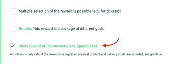 If your reward meets the guidelines and criteria for permitted products, you can list it on the marketplace yourself while editing. To do this, click on the checkbox in the interface and save your selection.